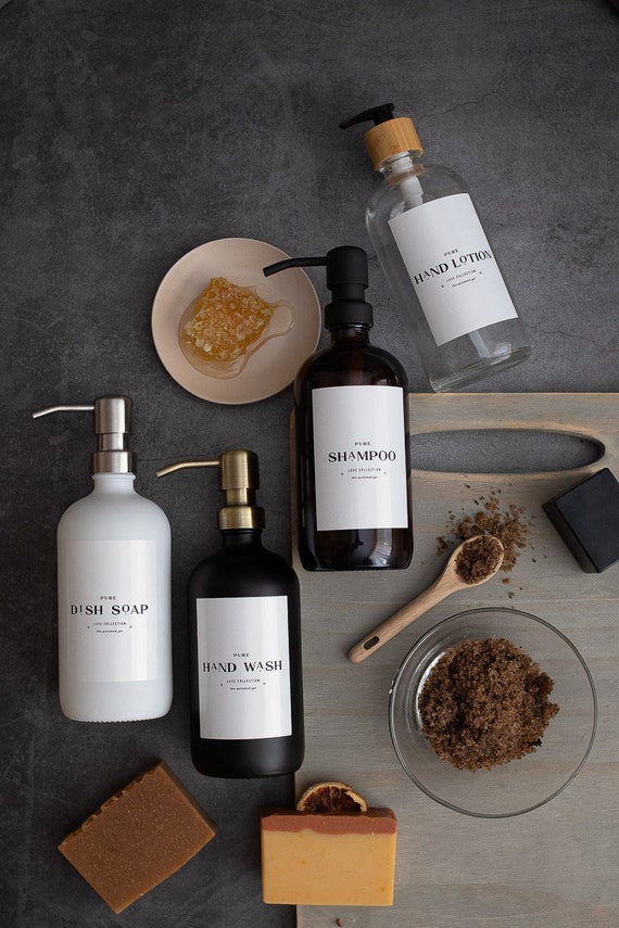 Glass Bottle Amber Or Clear Bottle Soap Dispenser Hand Etsy De